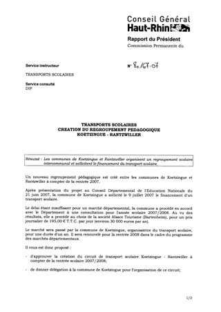 Transports scolaires : création du regroupement pédagogique KOETZINGUE - RANTZWILLER