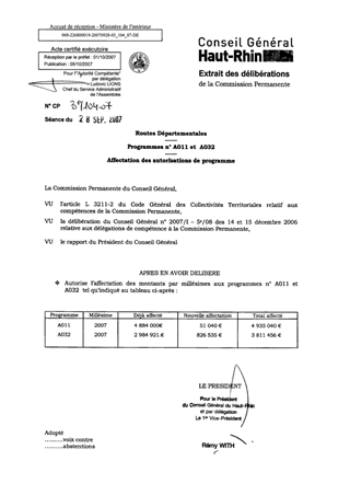 Routes départementales - Programmes n° A011 - A032 - Affectation des autorisations de programme