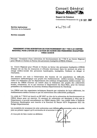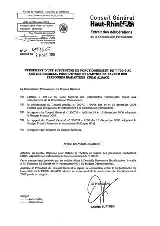 Versement d’une subvention de fonctionnement de 7 700 € au Centre Régional pour l’Etude et l’Action en Faveur des personnes Inadaptées (CREAI) d’Alsace