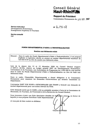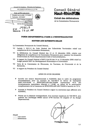 Dans le cadre du Fonds Départemental d’Aide à l’Industrialisation, il est proposé d’affecter à l’opération décrite en annexe un soutien départemental maximum de 720 000 € HT au titre du soutien aux bâtiments relais.