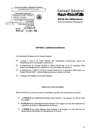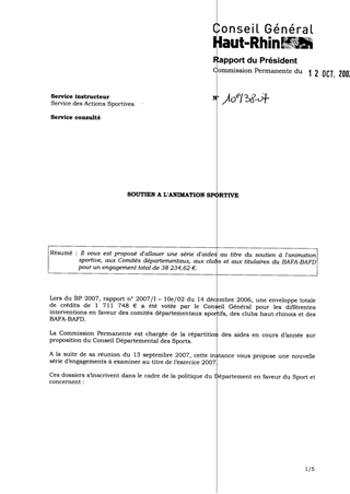 Il vous est proposé d'allouer une série d'aides au titre du soutien à l'animation sportive, aux Comités départementaux, aux clubs et aux titulaires du BAFA-BAFD pour un engagement total de 38 234,62 €.