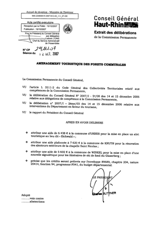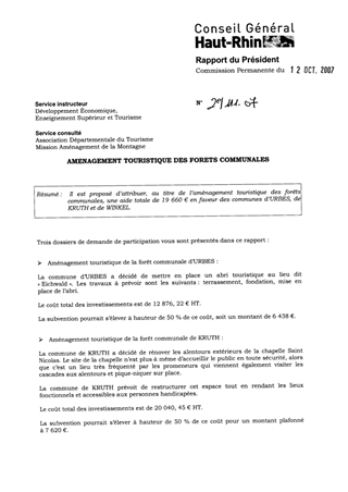 Il est proposé d’attribuer, au titre de l’aménagement touristique des forêts communales, une aide totale de 19 660 € en faveur des communes d’URBES, de KRUTH et de WINKEL.