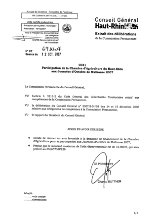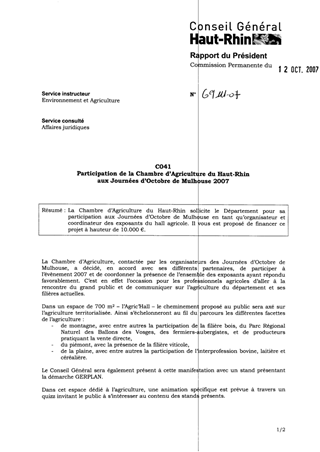 Participation de la Chambre d'Agriculture du Haut-Rhin aux Journées d'octobre de Mulhouse 2007
