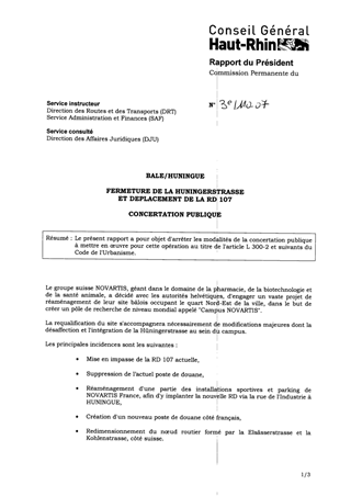Bâle/Huningue. Fermeture de la Huningerstrasse et déplacement de la RD 107. Concertation publique