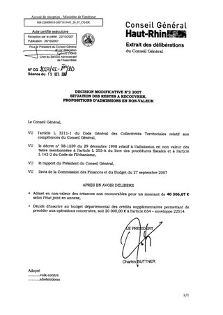 Décision Modificative n° 2 2007 - Situation des restes à recouvrer. Propositions d'admission en non valeur