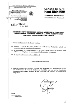 Dans le cadre du renouvellement de la composition de la Commission départementale chargée d’établir la liste d’aptitude aux fonctions de commissaire enquêteur, il convient de procéder à la désignation d’un Conseiller Général titulaire et d’un suppléant, chargés de représenter l’Assemblée Départementale au sein de cette instance.
