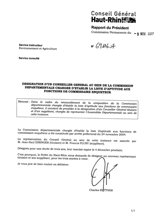 Désignation d'un conseiller général au sein de la commission départementale chargée d'établir la liste d'aptitude aux fonctions de commissaire enquêteur