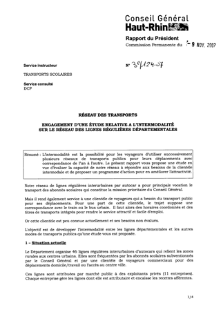 Réseau des Transports. Engagement d'une procédure relative à l'intermodalité sur le réseau des lignes régulières départementales