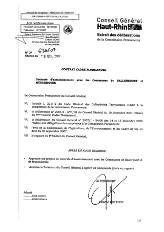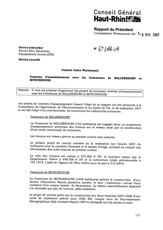 Contrat Cadre Pluriannuel : Contrats d'assainissement avec les communes de Ballersdorf et Munchhouse