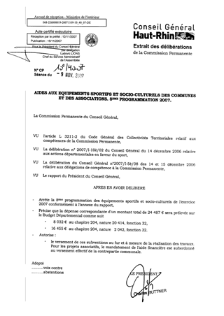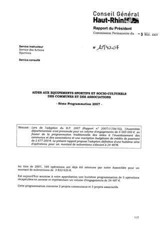 Aides aux équipements sportifs et socio-culturels des communes et des associations. 8e programmation 2007