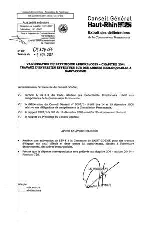 Dans le cadre du programme de valorisation du patrimoine arboré, le Conseil Général subventionne les travaux de restauration, de conservation et d’entretien effectués sur des arbres remarquables appartenant à des communes, selon le barème départemental des travaux de voirie. La Commune de SAINT-COSME nous a fait part de la nécessité d’effectuer des travaux d’élagage sur neuf tilleuls et deux ormes, classés à l’inventaire départemental des arbres remarquables et demande à bénéficier à ce titre d’une subvention de 839 €.