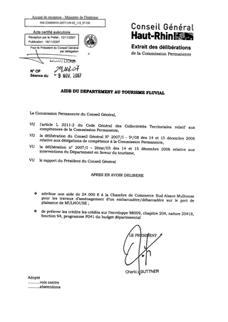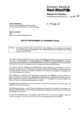 Il est proposé d’accorder à la CCI Sud Alsace Mulhouse une subvention à hauteur de 24 000 € pour l’aménagement d’un embarcadère dans le quartier de la gare centrale à MULHOUSE.