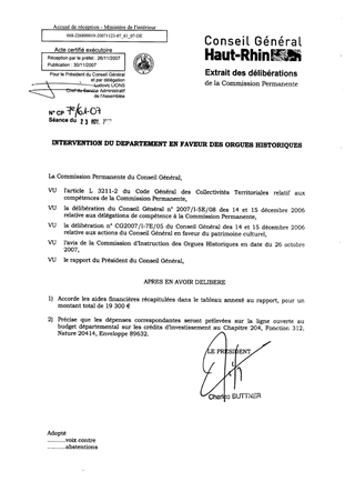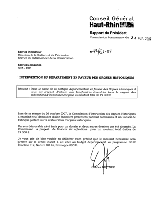Dans le cadre de la politique départementale en faveur des Orgues Historiques il vous est proposé d’allouer aux bénéficiaires énumérés dans le rapport des subventions d’investissement pour un montant total de 19 300 €
