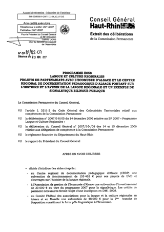 Programme E058 LCR Projets de partenariats avec le Comité Fédéral des Associations pour la Langue Régional d'Alsace, l'Ecomusée d'Alsace et le Centre Régional de documentation pédagogique d'Alsace portant sur l'histoire et l'avenir de la langue régionale