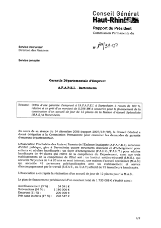 Garantie départementale d'emprunt. AFAPEI Bartenheim