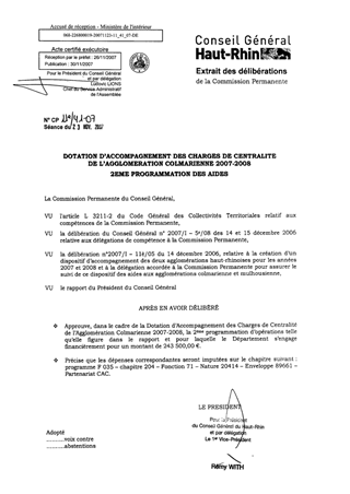 Dotation d'accompagnement des charges de centralité de l'agglomération colmarienne 2007-2008 : 2ème programmation des aides