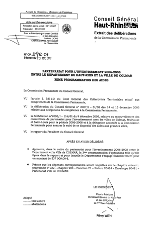 Partenariat pour l'investissement 2006-2008 entre le Département du Haut-Rhin et la Ville de Colmar : 3ème programmation des aides