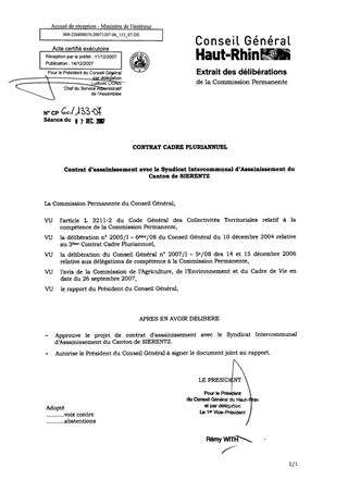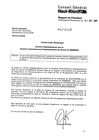 Contrat Cadre Pluriannuel : contrat d'assainissement avec le Syndicat Intercommunal d'Assainissement du Canton de SIERENTZ.
