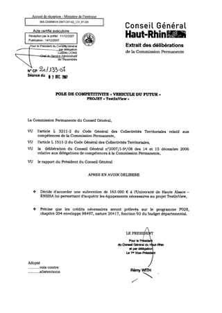 Pôle de compétitivité "véhicule du futur" Projet TestInView".