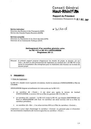 Aménagement d'un carrefour giratoire entre les RD 415 et RD 45 à ANDOSLHEIM - Programme A011.