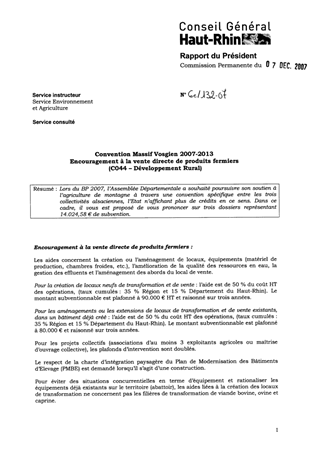 Convention Massif Vosgien 2007-2013 - Encouragement à la vente directe de produits fermiers (C044 - Développement Rural).