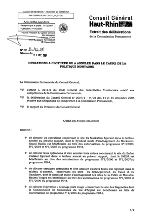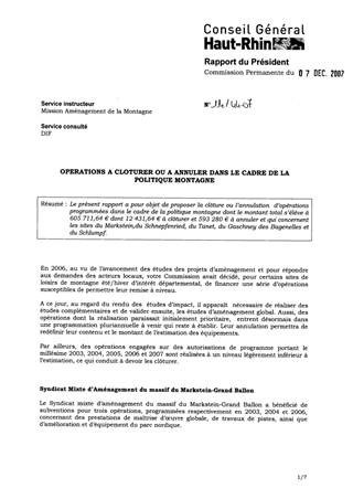 Le présent rapport a pour objet de proposer la clôture ou l’annulation d’opérations programmées dans le cadre de la politique montagne dont le montant total s’élève à 605 711,64 € dont 12 431,64 € à clôturer et 593 280 € à annuler et qui concernent les sites du Markstein,du Schnepfenried, du Tanet, du Gaschney des Bagenelles et du Schlumpf.