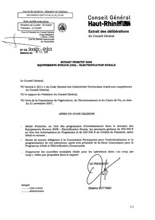 Budget Primitif 2008 - Equipements ruraux (CO2), électrification rurale.