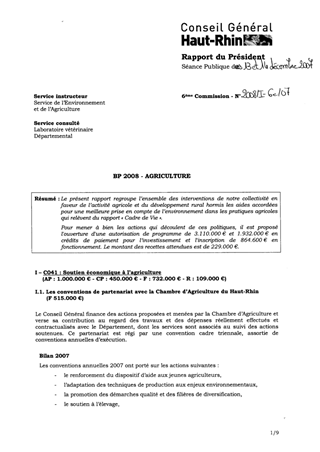Le présent rapport regroupe l’ensemble des interventions de notre collectivité en faveur de l’activité agricole et du développement rural hormis les aides accordées pour une meilleure prise en compte de l’environnement dans les pratiques agricoles qui relèvent du rapport « Cadre de Vie ». Pour mener à bien les actions qui découlent de ces politiques, il est proposé l'ouverture d'une autorisation de programme de 3.110.000 € et 1.932.000 € en crédits de paiement pour l’investissement et l'inscription de 864.600 € en fonctionnement. Le montant des recettes attendues est de 229.000 €.