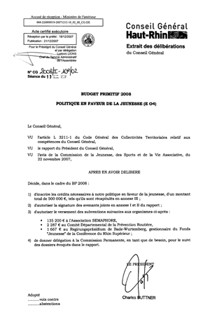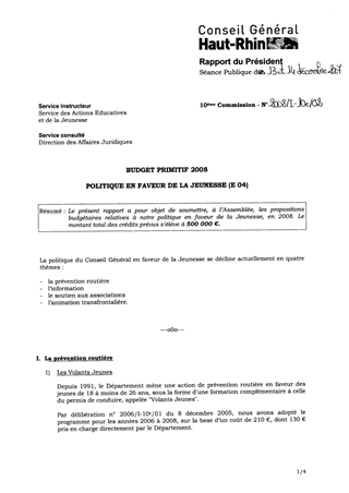 Budget Primitif 2008 - Politique en faveur de la jeunesse