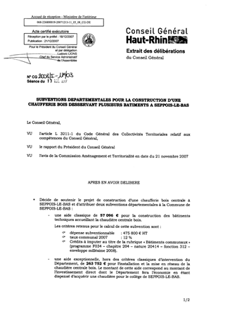Subventions départementales pour la constructions d'une chaufferie bois desservant plusieurs bâtiments à SEPPOIS-LE-BAS
