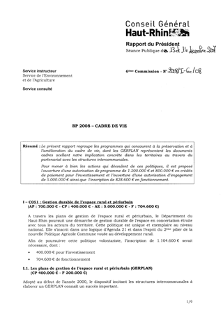 Le présent rapport regroupe les programmes qui concourent à la préservation et à l’amélioration du cadre de vie, dont les GERPLAN représentent les documents cadres scellant notre implication concrète dans les territoires au travers du partenariat avec les structures intercommunales. Pour mener à bien les actions qui découlent de ces politiques, il est proposé l'ouverture d'une autorisation de programme de 1.200.000 € et 800.000 € en crédits de paiement pour l’investissement et l’ouverture d’une autorisation d’engagement de 5.000.000 € ainsi que l'inscription de 828.600 € en fonctionnement.