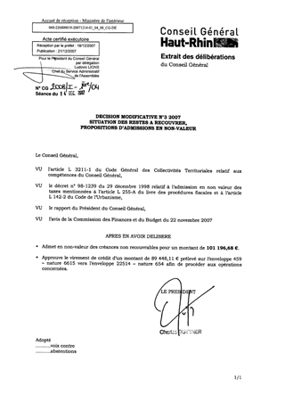 Décision Modificative n° 3. Situation des restes à recouvrer. Propositions d'admission en non valeur.