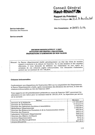 Le Payeur départemental établit périodiquement un état des titres de recettes restant à recouvrer à la clôture de l’exercice. Au vu des dossiers et des requêtes effectuées, il vous demande de délibérer sur l’admission en non valeur de certaines de ces créances jugées irrécouvrables. Ces demandes d’admission portent sur un montant de 101 196,68 €.