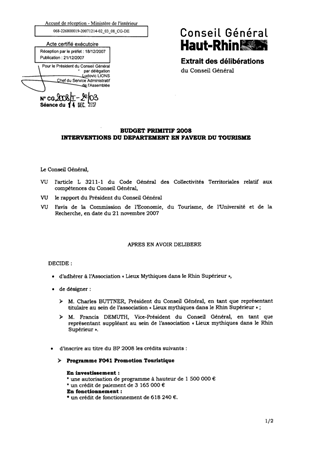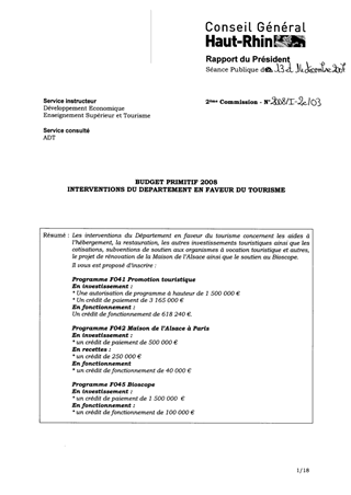 Budget Primitif 2008. Interventions du Département en faveur du tourisme.