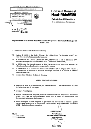 Le présent rapport a pour objet, dans le cadre du déplacement de la RD 107 (avenue de Bâle) à Huningue et Saint-Louis, d'approuver le bilan de la concertation menée au titre des articles L.300-2 et suivants du Code de l’urbanisme, d’approuver les études d’avant-projet et de solliciter l’ouverture de l’enquête publique conformément aux dispositions de l'article L.123-1 du Code de l'environnement, ainsi que l'article L.131-4 du Code de la voirie routière.