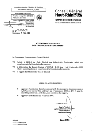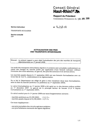 Le présent rapport a pour objet l'actualisation des prix des marchés de transports départementaux au 1er janvier 2008.