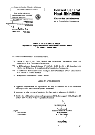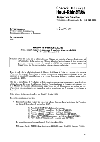 MAISON DE L'ALSACE A PARIS - Déplacement du jury de concours de maîtrise d'œuvre à PARIS les 26 et 27 Février 2008.