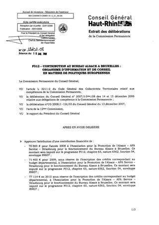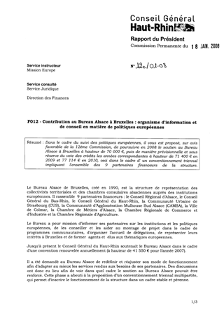 F012 - Contribution au Bureau Alsace à BRUXELLES : organisme d'information et de conseil en matière de politiques européennes.