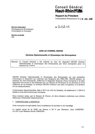 Le Conseil Général a été sollicité au titre du dispositif GEODE (Gestion Opérationnelle et Dynamique des Entreprises) par deux entreprises pour un montant de 3 040 €.