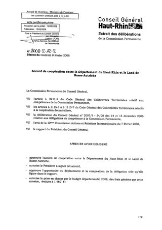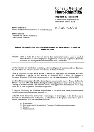 Accord de coopération entre le Département du Haut-Rhin et le Land de Basse-Autriche.