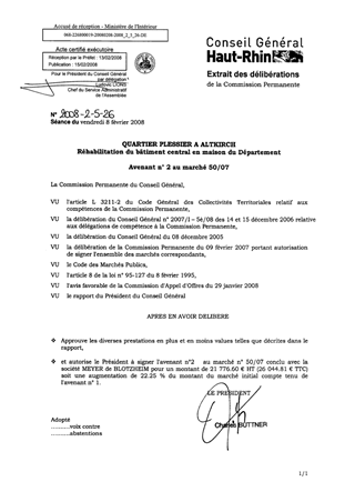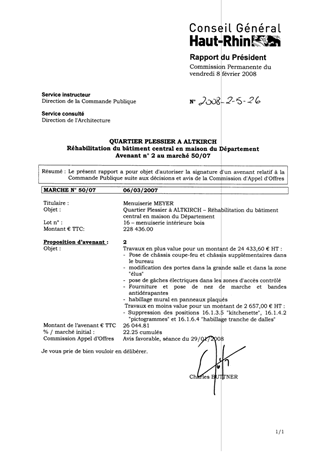 QUARTIER PLESSIER A ALTKIRCH Réhabilitation du bâtiment central en maison du Département Avenant n° 2 au marché 50/07