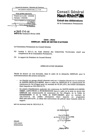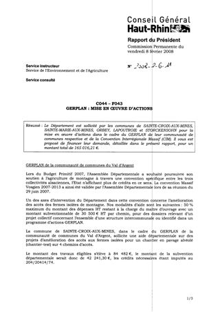 Le Département est sollicité par les communes de SAINTE-CROIX-AUX-MINES, SAINTE-MARIE-AUX-MINES, ORBEY, LAPOUTROIE et STORCKENSOHN pour la mise en œuvre d’actions dans le cadre du GERPLAN de leur communauté de communes respective et de la Convention Interrégionale Massif (CIM). Il vous est proposé de financer leur demande, détaillée dans le présent rapport, pour un montant total de 165 016,21 €.