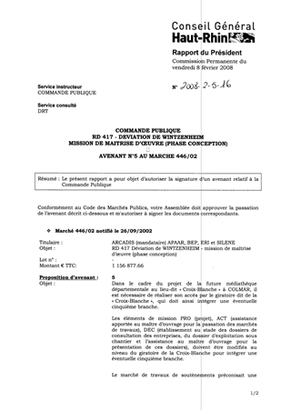 RD 417 - Déviation de Wintzenheim Mission de maîtrise d'oeuvre Avenant N°5 au marché 446/02