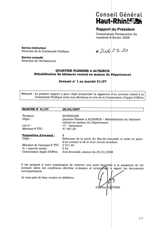 QUARTIER PLESSIER A ALTKIRCH Réhabilitation du bâtiment central en maison du Département Avenant n° 1 au marché 51/07