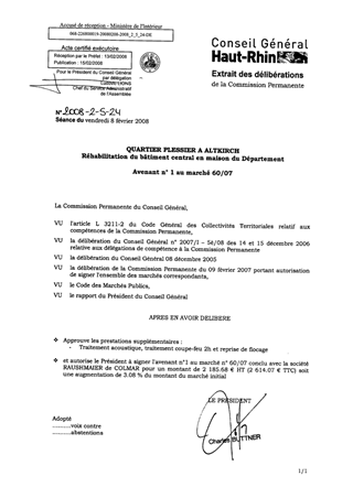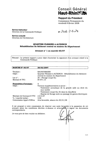QUARTIER PLESSIER A ALTKIRCH Réhabilitation du bâtiment central en maison du Département Avenant n° 1 au marché 60/07