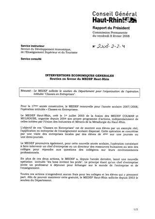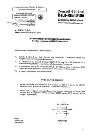 Interventions économiques générales Soutien en faveur du MEDEF Haut-Rhin