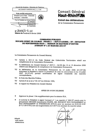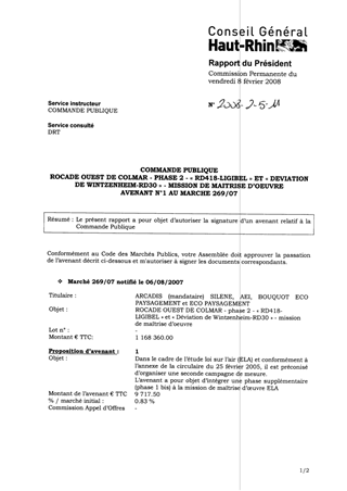 Rocade Ouest de Colmar Phase 2 RD 418 Ligibel et Déviation de Wintzenheim RD 30 Mission de maîtrise d'oeuvre Avenant N°1 au marché 269/07