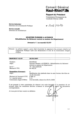 QUARTIER PLESSIER A ALTKIRCH Réhabilitation du bâtiment central en maison du Département Avenant n° 1 au marché 53/07
