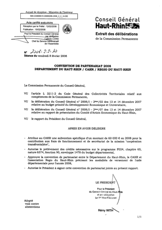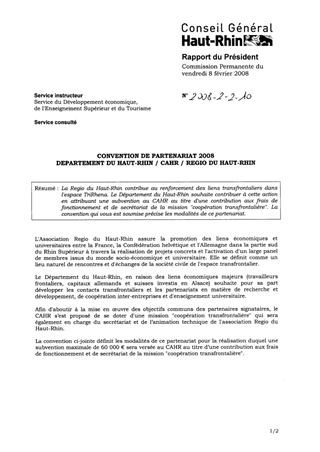 Convention de partenariat 2008 Département du Haut-Rhin/Cahr/Regio du Haut-Rhin