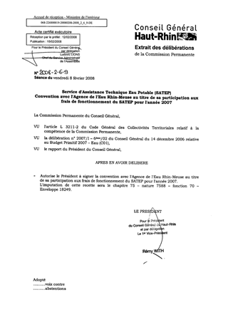 Service d'Assistance Technique Eau Potable (SATEP) - Convention avec l'Agence de l'Eau Rhin-Meuse au titre de sa participation aux frais de fonctionnement du SATEP pour l'année 2007.
